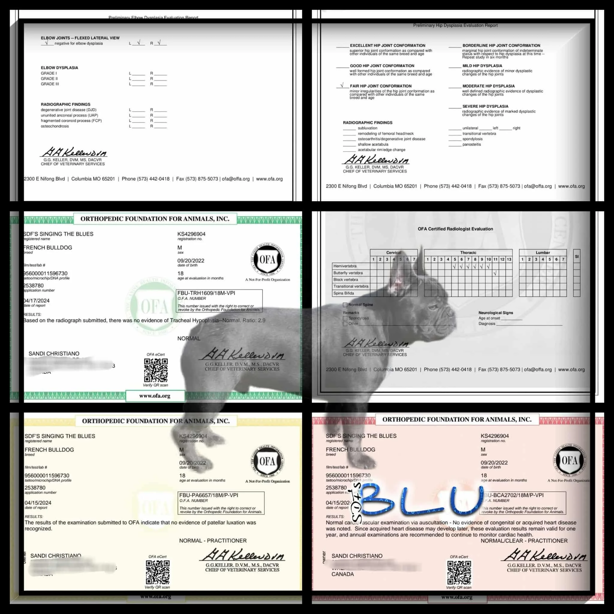DOB: April 18 2019 Produced by us here at SDF's Boss. Now loved and owned by Trish McDonald with Bullridge Bulldogs Jughead's OFA results are added to his slideshow and his certificates can be found here ~ https://ofa.org/advanced-search/?appnum=2142102Hips - Fair Elbows - Normal Trachea - Normal (2.4) Heart - Normal Patella - Normal